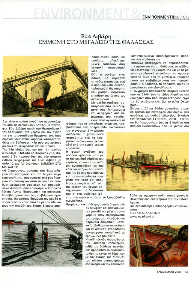 Calmness and abandonment, scenes of creation in recession and implied metal masses advocate to a disregard of colour. The human presence is discretionary, solitary, immersed in thought and reminiscence mood, accompanies nostalgically the desolate docks.